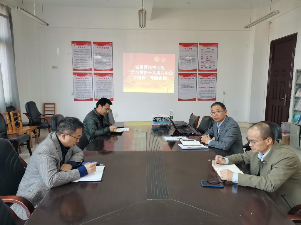 1118日上午,0638太阳集团在义丰楼619会议室召开党委理论中心组学习会议,专题学习贯彻党的十九届六中全会精神,我院党委班子成员出席了会议,会议由党委书记漆晗东主持。